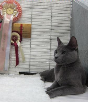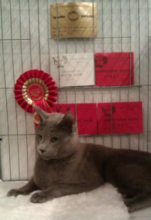 - Grand Premier Dushenka Zerachiel - special congratulations to Zach, who won his fifth Imperial certificate today, Best of Breed Russian Blue neuter, another two 1st prizes and was nominated for Best in Show; his litter sister