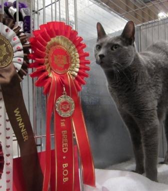 - Dushenka Jingle-Belle won the Challenge Certificate and Best of Breed Russian Blue adult at her first adult show